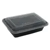 Take-Out Container Base & Lid Combo 42 OZ 3 Compartment Black Rectangle Heavy Duty 150/Case
